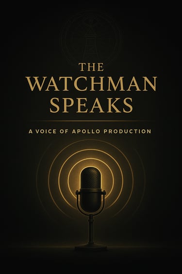 The Watchman Speaks is the foundation series — the voiceprint of Apollo and the inaugural transmission that reintroduces conscience into public discourse. Each episode operates as a moral declaration, blending theology, reason, and prophetic discernment. Its tone is solemn, investigative, and reverent — a call to awaken those lost in the noise of entertainment and ideology.